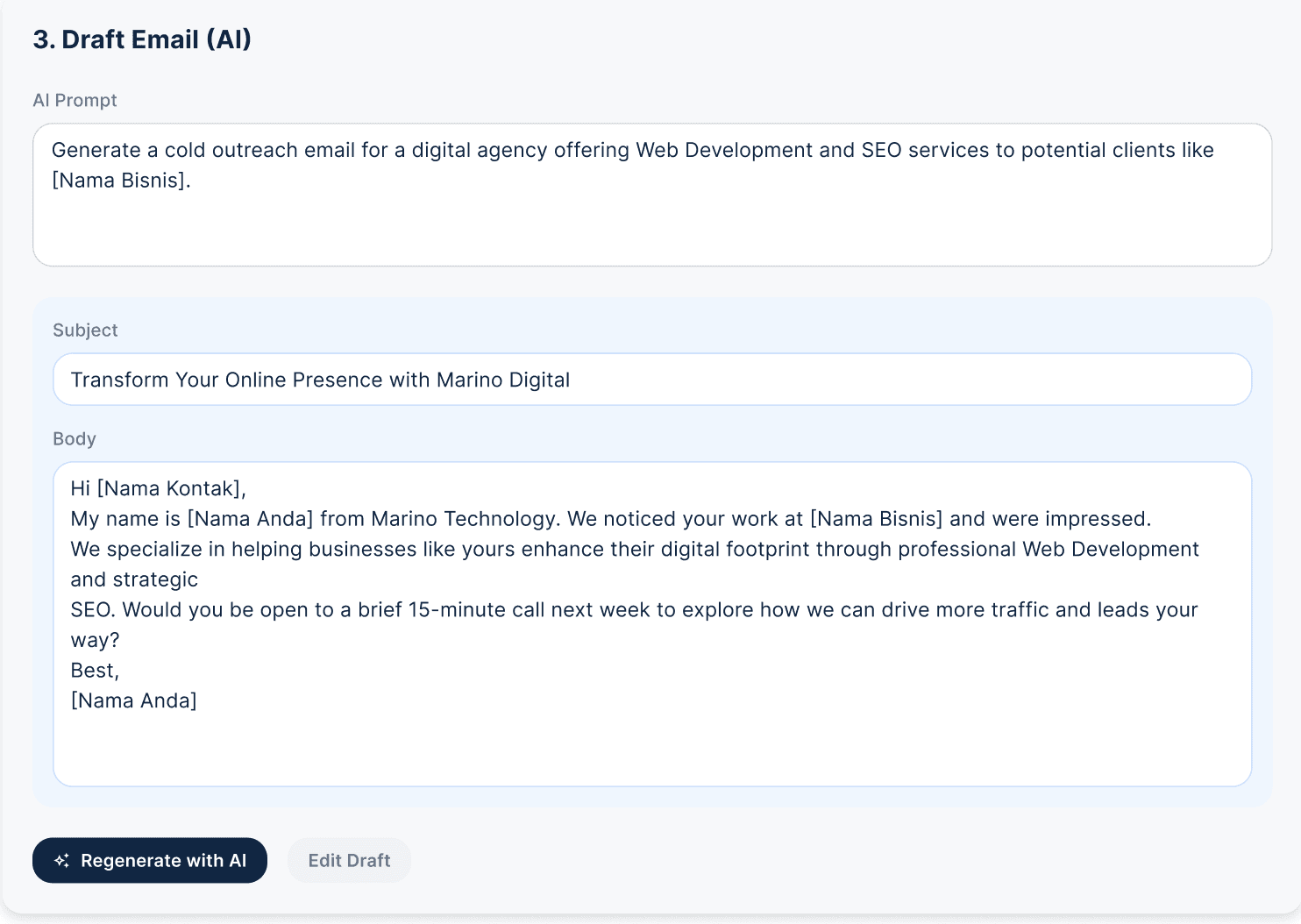The system helps you choose the right tone, timing, and content — making your outreach more relevant and effective.