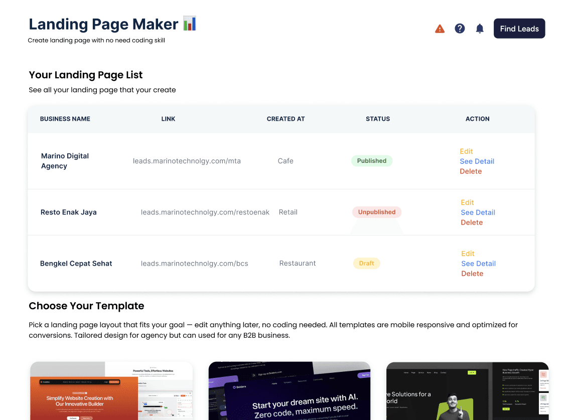 We’re Marino Leads — an AI-powered platform built to help digital agencies and B2B teams find, manage, and convert leads effortlessly.