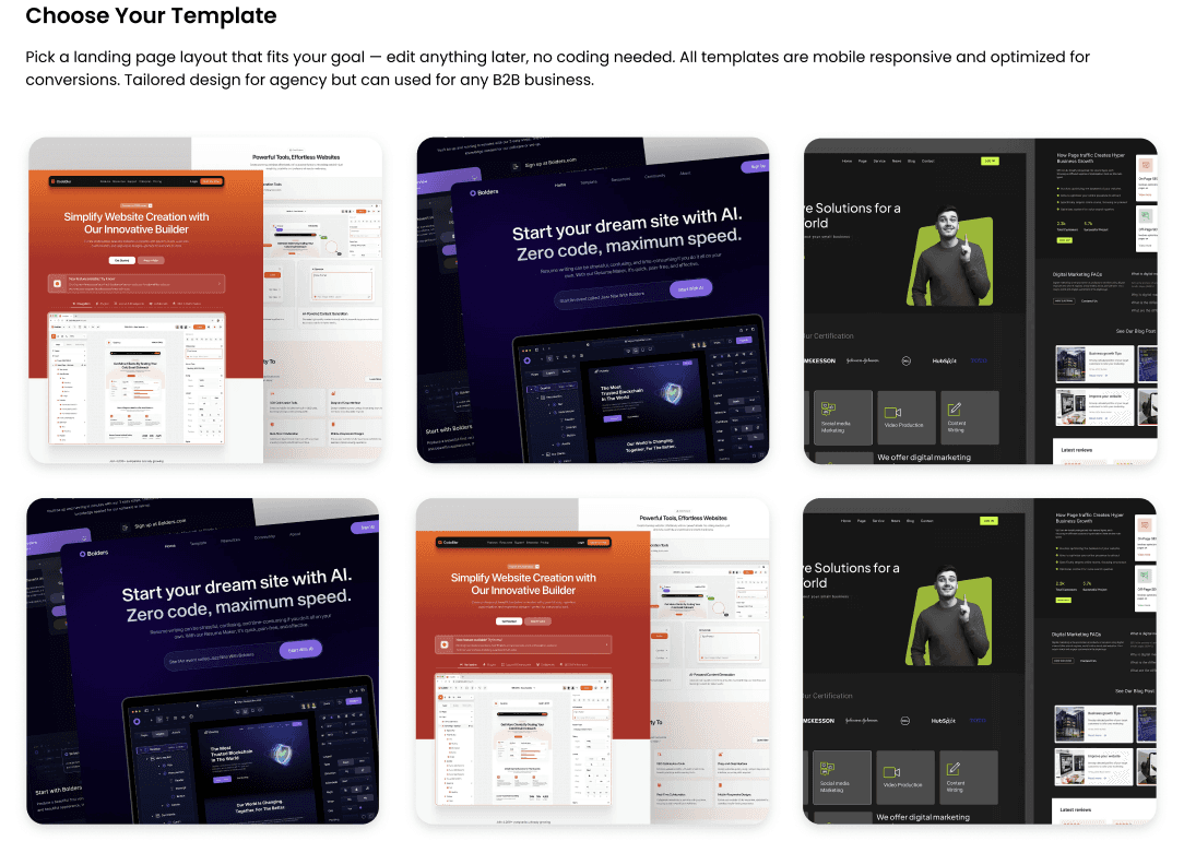 All templates are optimized for conversion and mobile-friendly.